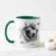 Una taza creativa de fútbol. Edita texto para añadir el nombre de tu jugador de fútbol favorito, entrenador de futbol o aficionado al deporte de equipo.