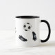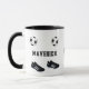 Add your own caption or a name to personalize this coffee mug, a special gift for any soccer player or fan (or British football!) The two-sided design has soccer balls and soccer boots.