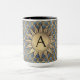 Sol dorado con personalización inicial en un fondo Art Deco azul y oro.