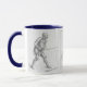 Mug con tres soldados medievales: un ballenero, caballero montado y hombre en armas.
