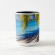 Sombras de una palmera en la playa de Takapoto, una isla del atolón de Tuamotu en la Polinesia Francesa.