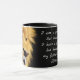 Esta taza tiene una foto de cerca de la cara de un león macho sobre un fondo negro, y una cita de una persona desconocida sobre el amor de una hija por su padre: Soy una princesa. No porque tenga un príncipe, sino porque mi padre es un rey.