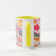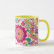 Vibrant Spring Floral Paisley inspired pattern Coffee mug featuring, pink, yellow and green flowers incorporated into a paisley style pattern.