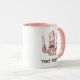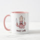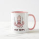 Personalizado del chef del calamar rosa con bigote sosteniendo cuchillo y tenedor de cocina. Texto personalizado en ambos lados.