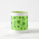 El Día de San Patricio Shamrock decora esta atractiva taza, preparada para una taza caliente de cacao... o un café irlandés.