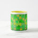 Chispas verdes alegres decoran esta atractiva taza, preparada para una taza caliente de cacao... o un café irlandés.