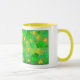 Chispas verdes alegres decoran esta atractiva taza, preparada para una taza caliente de cacao... o un café irlandés.