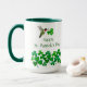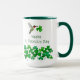 Cute St. Patrick's Day mug featuring a hand-painted ruby-throated hummingbird carrying a shamrock.