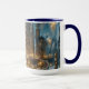 Una antigua ciudad futurista de vapor con medusas flotantes flotando en los cielos circundantes con agua fluida y luz de la luna incorporada al diseño.