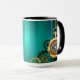 Jewelry, gold watch with a gold chain and keys on a green textural background. Steampunk style.