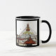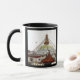 COFFEE MUG - Celebración del día de Padmasambhava con flores decoradas Stupa. La stupa más grande del mundo - Boudhanath Stupa brilla en las tinieblas de la noche como un faro de arco iris con colores asombrosos. Este lugar icónico, con una calma vertiginosa, es como un oasis en la bulliciosa y polvorienta Katmandú. A cualquier hora del día se rompe con diferentes puntos de vista y colores, pero siempre ocupado con la gente que rodea su perímetro. Descubriendo los Himalayas - series travel/dharma, Nepal. Fotografía original/Arte/Diseño de work4dream.