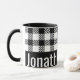 Los modernos cheques en blanco y negro con un nombre editable en letra masiva, le hacen un gran regalo y un precioso sake.