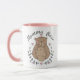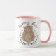 Dulce ilustracion de un oso bebé abrazando a su mamá con las palabras "oso mamá". Corazones rosas y hojas verdes rodean la imagen.