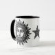 A hand‑inked Sun and Moon emblem rendered in the haunted, ritual style of BurnsInHell. The solar face radiates flame‑tipped rays while the lunar star‑knot anchors the opposite side, creating a balanced duality of light and shadow. Perfect for anyone drawn to mythic symbolism, occult‑leaning décor, or monochrome inkwork. Ideal for daily use, altar spaces, or as a gift for lovers of folklore and celestial art.