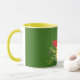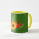 Hermosa jarra otoñal con dibujos de girasol y hojas de otoño. Es fácil agregar un nombre o texto personalizado. Elija su fondo y dentro del color de la taza.