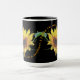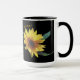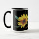 2 Grandes girasoles solteros sobre un fondo oscuro con el texto "¡Como un girasol, sigo el sol!". Las imágenes de girasoles provienen de una foto que tomé de un girasol que crece en mi jardín en 2017. Las imágenes están bloqueadas pero el texto puede ser alterado o borrado. El diseño se hizo en la taza de 15 oz, pero también funciona para la taza de 11 oz.