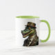 Un crocodile steampunk ultra stylé porte un costume victorien super classe, avec un haut-de-forme rempli de rouages et une montre qui claque. Il a un regard perçant et des crocs bien aiguisés, ce qui le rend cool et intimidant à la fois. Son peau pleine d’écailles contraste avec ses vêtements trop stylés, mélangeant le monde des reptiles et le style rétro industriel. Avec son costard ultra détaillé, il a l’air de sortir tout droit d’un univers steampunk fantastique où les animaux sont des gentlemen très classe. L’image est parfaite pour ceux qui adorent le côté rétro et mécanique, avec une touche d’élégance sauvage.