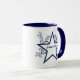 Excelente y divertida Superstar Swirls diseño en azul oscuro con una gran estrella y una cascada de remolinos. Esta encantadora taza sería un regalo maravilloso para cualquier mujer. Producto de personalizable completo. Cambie los colores de fondo, texto, fuentes y tipos de letra para darle a este producto su propio toque personal!