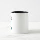Teal and white flowers SA awareness ribbon on a coffee mug. For those who have survived abuse and assault.