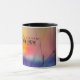 La cita inspiradora del tazón de café representa una hermosa pintura acuarela con un naranja simple y un amanecer amarillo sobre un campo azul niebla. Presenta Biblia Verse Lamentations 3:23, "Sus misericordias son nuevas cada mañana".