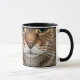 A hilarious and unique mug design featuring two close-up photographs of an adorable brown tabby cat. One photo shows the cat's intense green eyes, nose, puss and whiskers, and the other captures the fluffy front tabby legs and paws. Perfect for cat lovers, veterinarians, pet owners, or anyone who enjoys quirky, abstract, and humorous animal designs. A fun way to enjoy your morning coffee or tea!