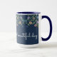 Elegante tafetán de café grande con un estampado floral dulce, el fondo azul con el que está en el patrón se puede cambiar a cualquier color que se vaya con la decoración de tu casa o casa de campo. El texto se puede personalizar a cualquier mensaje, o el texto se puede eliminar.