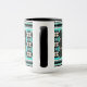 Esta obra de inspiración tribal teje un tapiz de geometría con narración. El diseño está anclado en turquesa, mientras que el marfil y los elementos amarillos se empolvan a través del patrón.