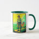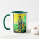 Mug in the tarot card, "The Fool," portraying a confident adventurer standing on a cliff, symbolizing new beginnings. Dressed in rugged attire, he’s accompanied by a loyal dog. The vivid landscape and golden sky conveys freedom, optimism, and the courage to embrace life’s unknown paths.
