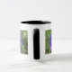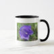 Die grosse Blüte einer blauen Glockenblume, bei der man den weissen Stempel im Blütenkelch sieht, ist das Motiv dieser Tasse, hier mit schwarzem Henkel und Rand. Die Farben für Henkel und Rand sind wählbar. Es sind auch y ere Tassenvarianten verfügbar.