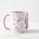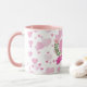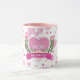 ¡Qué dulce regalo para tu madre este lindo Mug! Con las palabras "Te amo, mamá" impresas en un gran corazón suave y rosa y "Feliz Día de la Madre" impresas en una pancarta rosada caliente, en un fondo rosado de pequeños corazones, esta taza haría un regalo único y especial para cualquier madre.