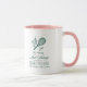 Celebra el último swing de la novia antes del anillo con esta elegante taza personalizada de tenis para despedida de soltera. Con una ilustración chic de raquetas cruzadas y martini con nombre, ubicación y fecha personalizados, esta taza de cerámica de dos tonos hace un recuerdo perfecto para una despedida de soltera con tema de tenis, fin de semana de chicas o regalo para las damas de honor.