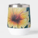 Esta taza térmica está impresa con un diseño de hibisco amarillo dibujado a mano.