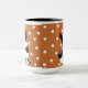 Un Terrier de Boston fresco sobre un fondo marrón con lunares blancos.