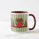 ¿Estás buscando un regalo para Navidades lindos? Tal vez esta taza es la que te gusta comprar. Las lechuzas verdes y rojas están decoradas con un estilo Navidad y separadas unas de otras por pequeños árboles de navidad geométricos. La taza tiene un fondo rayado. El texto "Feliz Navidad" es un objeto de plantilla y puede cambiarse fácilmente a cualquier otro texto. Es posible cambiar el tamaño y / o color de las fuentes. Incluso puede elegir un tipo de letra diferente.
