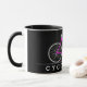 Cicólogo con texto en blanco sobre negro con bicicleta rosa en línea gris.