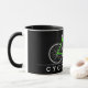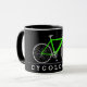 Cicólogo con texto en blanco sobre negro con bicicleta verde cal brillante en línea gris.