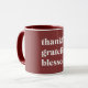 Start your day with gratitude using this Thankful Grateful Blessed Coffee Mug, featuring a warm terracotta tone and minimalist ivory typography.