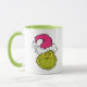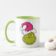 This fantastic, bold illustration is a close-up portrait of the Grinch in full mischievous mode! He has his signature sly grin and bright yellow eyes, but his look is updated with a large, fluffy Santa hat in a fun, unexpected pink/fuchsia color instead of the traditional red. This graphic is perfect for anyone who loves the holidays but embraces a non-traditional, delightfully grumpy, and colorful style!