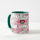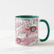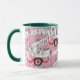 This complex and whimsical repeating pattern captures the joyous, heartwarming celebration of the Whos of Whoville after their Christmas is saved! The design features long, curved dining tables set with tall, whimsical candlesticks, towering piles of food, and elaborate tureens. The tiny Whos are seated and serving, dressed in their holiday best, celebrating beneath a festive green wreath proclaiming "MERRY MERRY." Set against a playful pink background, this detailed print is bursting with the classic charm and chaotic energy of a genuine Dr. Seuss Christmas!