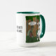Una taza con un personalizado gracioso sobre el cambio climático. La imagen, el fondo y el texto se pueden personalizar. Obra de arte original de DBcartoons.