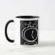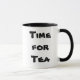 Tiempo del té (mano derecha): "Hora para la taza del té-tiempo del té" con el texto intrépido en un lado y un dibujo animado diseñan el despertador en el otro. Vea también la versión a juego del pote del té.