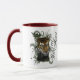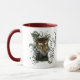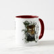 Pintura fotorrealista del aerógrafo todavía del tigre de una alarma mientras que remolina tomar una bebida en una corriente de la selva, artístico aumentada por un marco del grunge floral. ¡Un diseño único para todos los amantes del tigre!