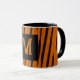 Taza divertida con estampado de animal, hecho en un patrón de rayas de tigre negro y naranja. Personalice el monograma de una letra personalizado, para satisfacer sus necesidades. Gran idea de regalo.