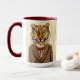 Características del este diseño un tigre que lleva una chaqueta elegante y una pajarita roja.