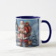 La clásica jarra vintage con la imagen de Santa Claus es una reinterpretación reconfortante de la alegría navideña. Santa Claus, en su icónico traje rojo con barniz blanco, es visto con una sonrisa jovial y ojos brillantes que irradian amabilidad y alegría. Su panza redonda, indicativa de su naturaleza alegre, está cubierta por un gran cinturón de hebilla dorada. En sus manos engullidas, sostiene un saco rebosante de regalos hermosamente envueltos, listos para ser entregados. El telón de fondo es una noche de invierno serena, el cielo pintado con tonos azules y salpicado de estrellas brillantes. La luna brilla de manera brillante, proyectando un suave resplandor sobre el paisaje cubierto de nieve. Los copos de nieve caen suavemente, cubriendo la tierra con una capa blanca prístina. En este maravilloso paraje de invierno se encuentra una acogedora casa de campo, que ofrece calidez y confort. La casita de campo, con sus paredes de piedra y su techo de paja, está decorada con luces de Navidad que brillan por su ausencia. Las nubes de humo salen de la chimenea, lo que sugiere que hay un incendio en el interior. Las ventanas emiten una luz cálida y acogedora, creando un contraste marcado frente a la fría noche de invierno. Esta clásica imagen vintage de Santa Claus y una acogedora casa de campo en una noche de invierno resume la esencia de los Navidades: calidez, alegría y la expectativa de dar y recibir regalos.