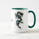 tazón de café de Guay, con gráficos de un dragón de estilo chino de aspecto metálico, con verde azulados acentos verdes. Personalice el texto verde, en la parte delantera de la taza para usted o como una gran idea de regalo para cualquier amante de fantasía.