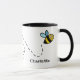 Un bonito ilustracion de abejorro con un rastro de líneas en forma de corazón.