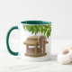 Diseño original de la bella arte de una ardilla que asume el control el birdfeeder del diseñador/del ilustrador Carolyn McFann en una taza de la calidad. Gran idea para un regalo para todos a quienes alimente el intento de los pájaros. .or por lo menos, de todas formas.