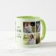 Celebrate Mother's Day with a touch of nature-inspired color! This stylish two-tone mug in a refreshing lime green shade is the perfect canvas for your favorite family memories. Featuring a clean 8-photo grid and a modern vertical layout for the "Best Mom Ever" message, it's accented with three charming green hearts.