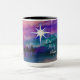 Hermosa escena acuarela con la silueta de los Tres Reyes que viajan al recién nacido Jesús. Tarjeta de Navidades religiosos que proclaman el nacimiento de Cristo.